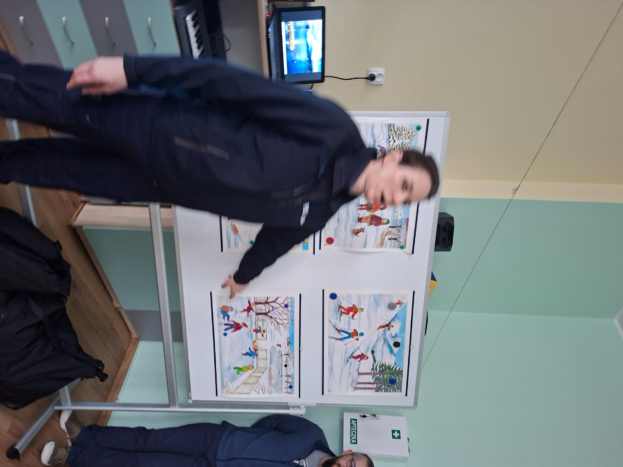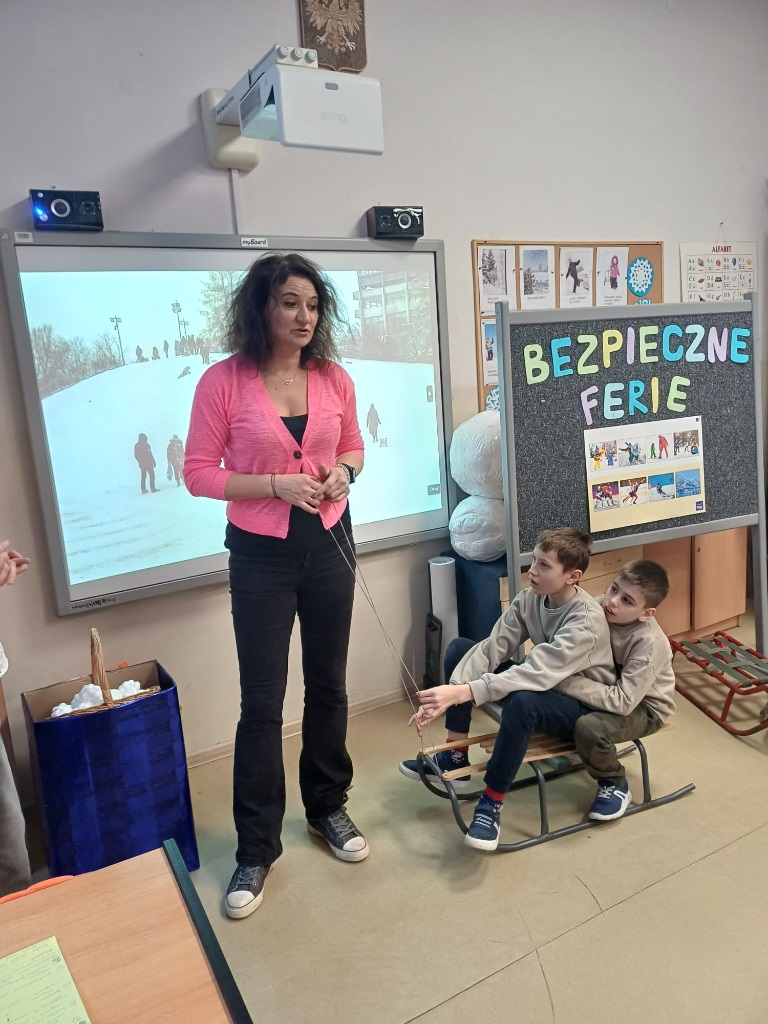 Uczniowie przypomnieli sobie zasady bezpieczeństwa podczas zimowego wypoczynku- zarówno w domu jak i na świeżym powietrzu