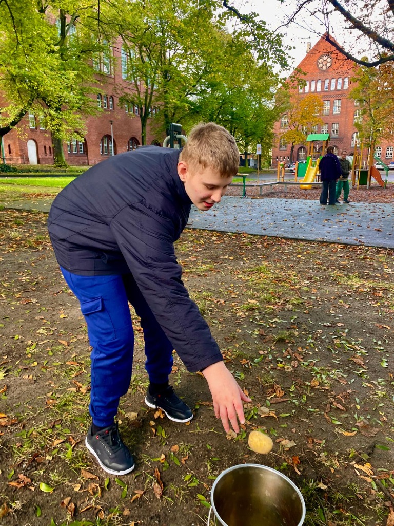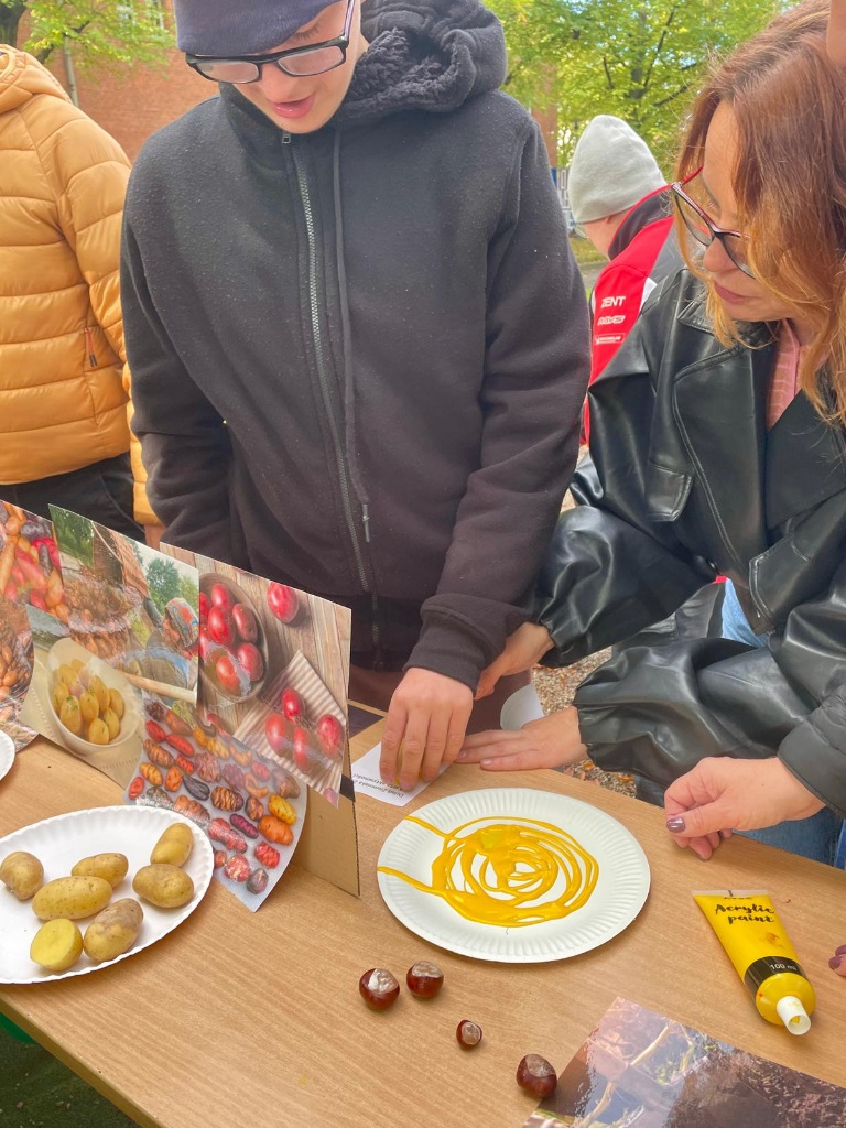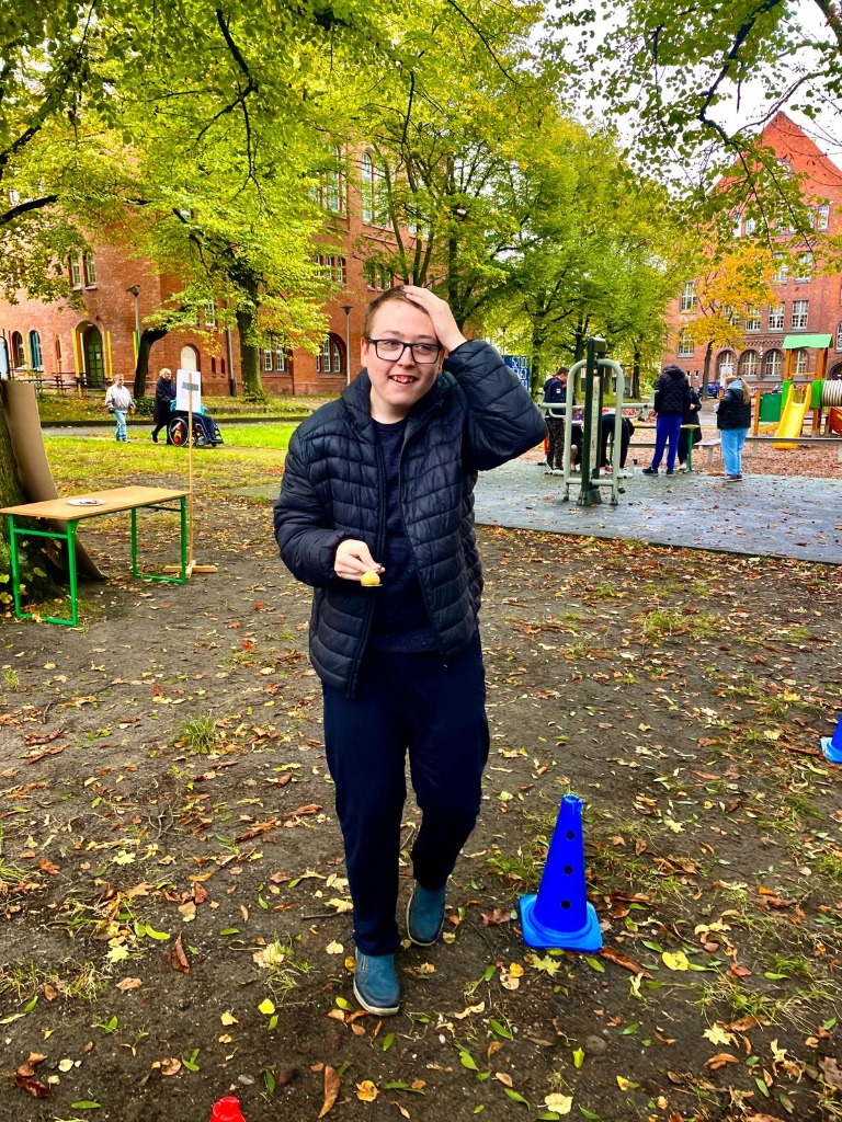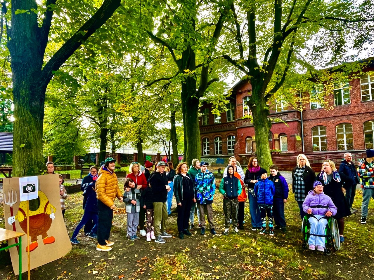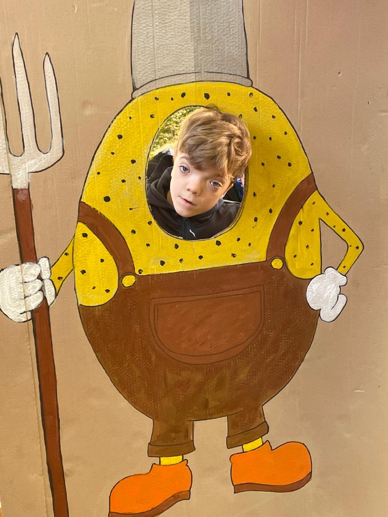W czwartek, dnia 9.10.2025 r. na terenie ośrodka zorganizowane zostały zajęcia tematyczne z okazji "Dnia Ziemniaka". Wychowankowie przyswoili wiedzę dotyczącą ciekawostek nt. warzywa, które króluje na polskich stołach. Szczególne zainteresowanie wzbudziła jego fioletowa odmiana. Spróbowali swoich siły w slalomie z ziemniakiem i rzucaniu pyrą do celu. Szukali w trawie i wszelkich zakamarkach ukrytych bulw. Sensorycznie doświadczali smakowitych mas z mąki ziemniaczanej i tarli ziemniaki na placki. Zwieńczenie zajęć stanowiło zdjęcie w fotobudce jako Pan Ziemniak imieniem "Pyriusz". Panowała bardzo pozytywna atmosfera a pogoda tego dnia obdarowała nas jesiennym słońcem. 🙂