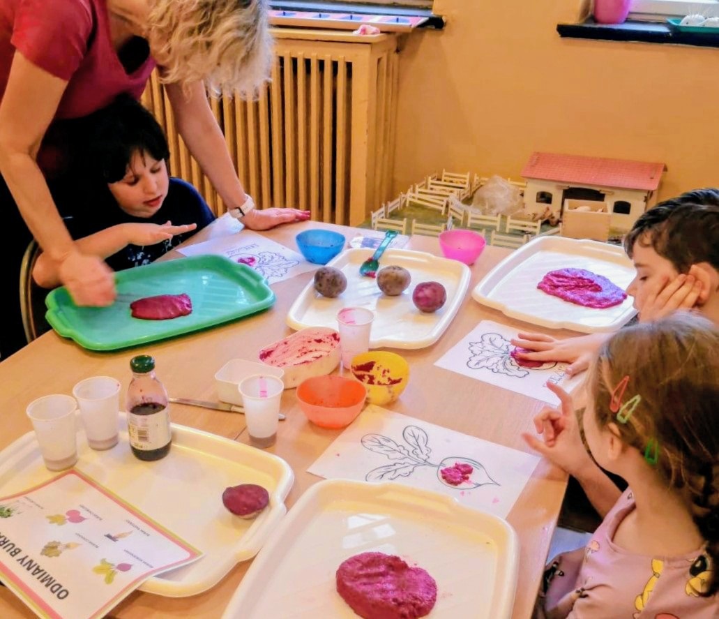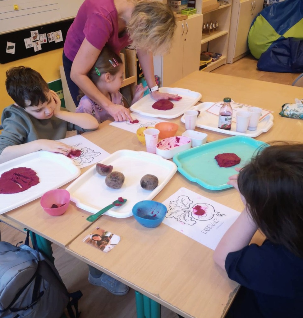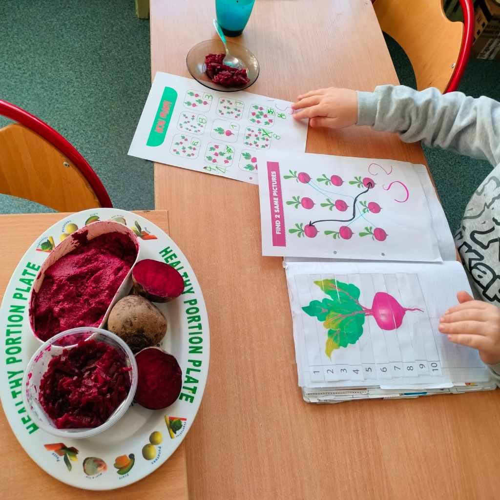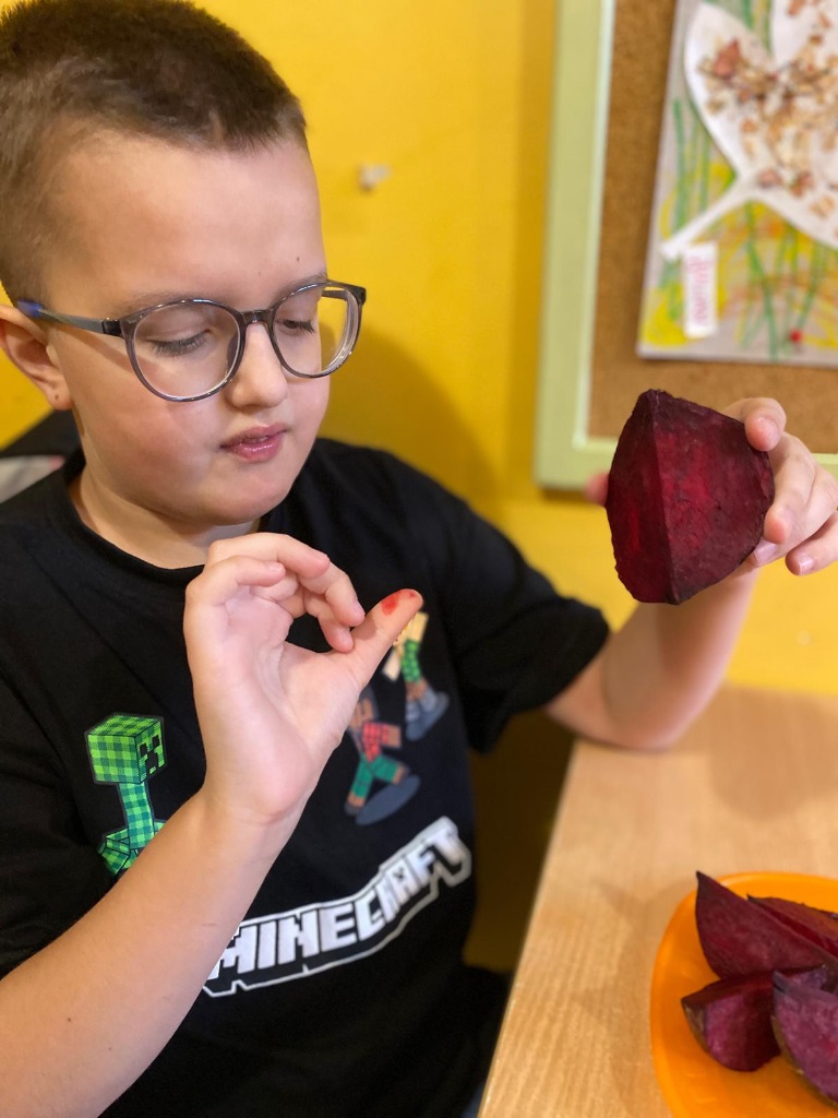 Kreatywni znowu w akcji. Oddziały I b, II a, II b, III b, III c, V a, VII a zrealizowały zadanie z modułu III "Dzień buraka" w ramach Ogólnopolskiego Projektu Edukacyjnego "Kreatywne Dni Nietypowe". Zapoznaliśmy się z tym zdrowym warzywem polisensorycznie. Było malowanie burakiem, sensoryczna masa z buraka, sok z buraka. Poza tym mnóstwo zadań na kartach pracy i zadań plastyczno-technicznych.