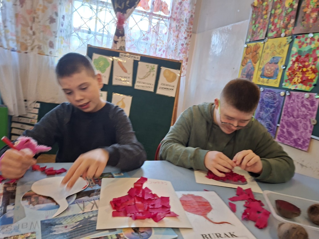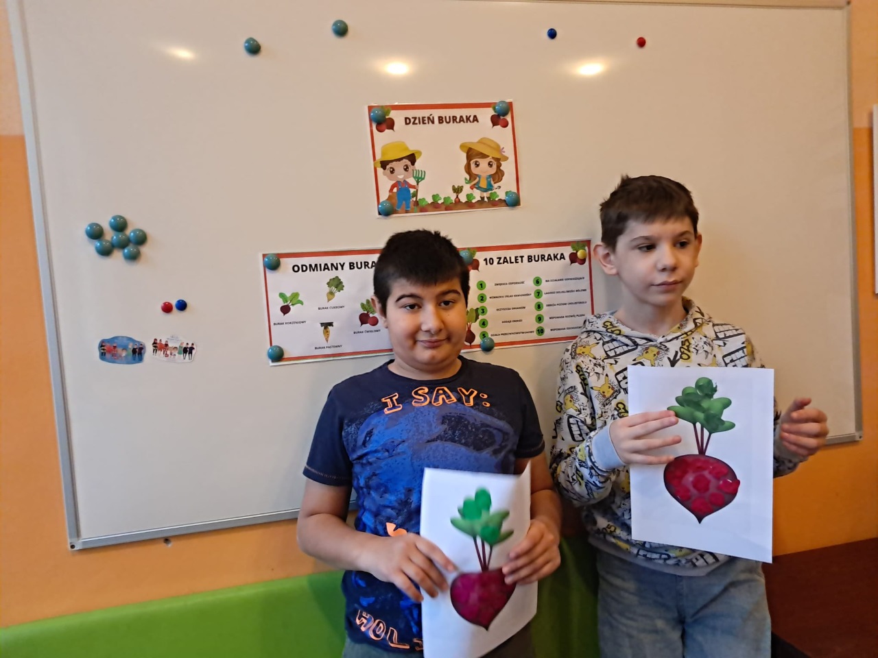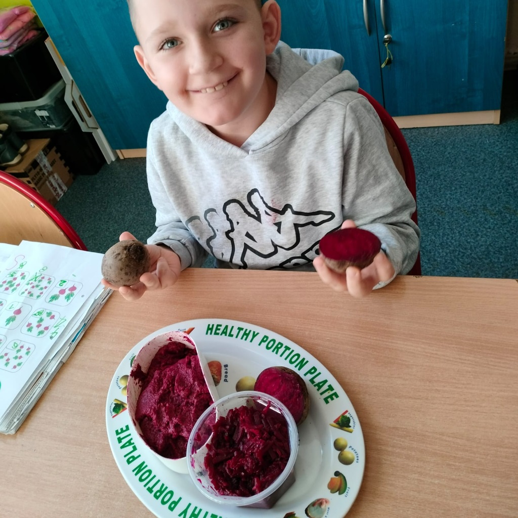 Kreatywni znowu w akcji. Oddziały I b, II a, II b, III b, III c, V a, VII a zrealizowały zadanie z modułu III "Dzień buraka" w ramach Ogólnopolskiego Projektu Edukacyjnego "Kreatywne Dni Nietypowe". Zapoznaliśmy się z tym zdrowym warzywem polisensorycznie. Było malowanie burakiem, sensoryczna masa z buraka, sok z buraka. Poza tym mnóstwo zadań na kartach pracy i zadań plastyczno-technicznych.