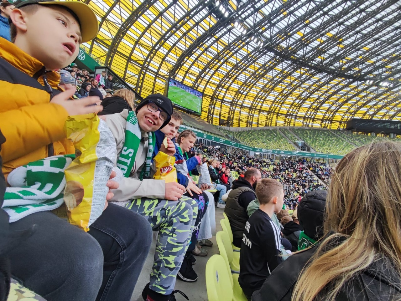 Od pierwszego gwizdka emocje były bardzo silne. Wychowankowie żywo reagowali na każdą akcję. Były okrzyki radości, wspólne śpiewy i momenty napięcia, kiedy piłka zbliżała się do bramki. Widać było duże zaangażowanie. Szaliki w górze, doping i poczucie wspólnoty z innymi kibicami dawały dużo pozytywnej energii. Dla wielu był to wyjątkowy dzień, bo mogli zobaczyć mecz na żywo. Atmosfera stadionu, hałas trybun i tempo gry robiły ogromne wrażenie. Była ekscytacja, ale też chwile skupienia i przeżywania tego, co dzieje się na boisku.