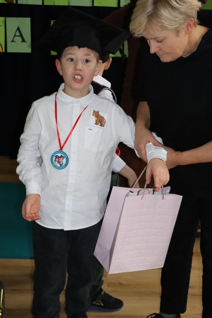 Na uroczystość Pasowania na Ucznia przybyli zaproszeni goście: Dyrekcja, Rodzice, Dziadkowie, reprezentacja uczniów klas młodszych wraz z nauczycielami. Zgromadzona publiczność miała okazję zobaczyć piękny występ artystyczny pt. „Leśna przygoda” w wykonaniu najmłodszych. Po nim nastąpiła najważniejsza i długo wyczekiwana chwila – pasowanie na ucznia. Pani dyrektor, Katarzyna Zarębska magicznym ołówkiem mianowała na ucznia każdego pierwszoklasistę. Wszyscy otrzymali medal, upominek oraz moc owacji na stojąco. Tego dnia w niejednym oku zakręciła się łezka, w niejednym sercu zagościła wiara w dobry start. Wszystkim pierwszoklasistom życzymy samych sukcesów oraz wielu radosnych chwil w szkole! Brawo Wy!