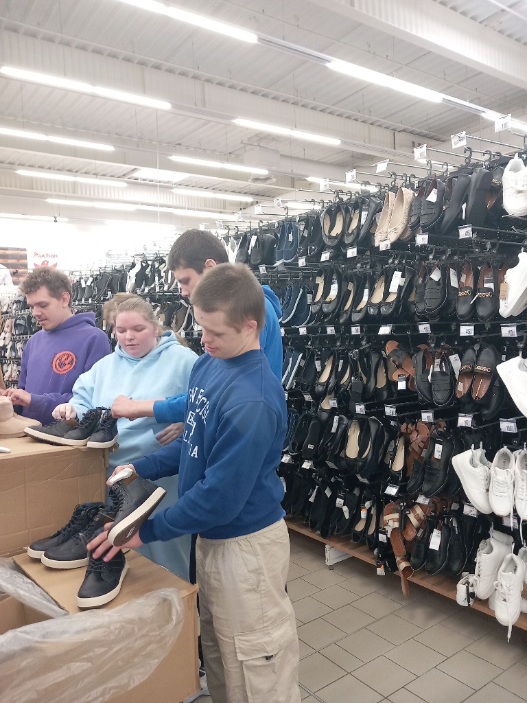 Uczniowie SPDP z radością i dużym zaangażowaniem kontynuują praktyki wspomagane w supermarkecie Auchan. Co tydzień doskonalą umiejętności potrzebne w pracy wykonując różnorodne zadania na wielu stanowiskach.