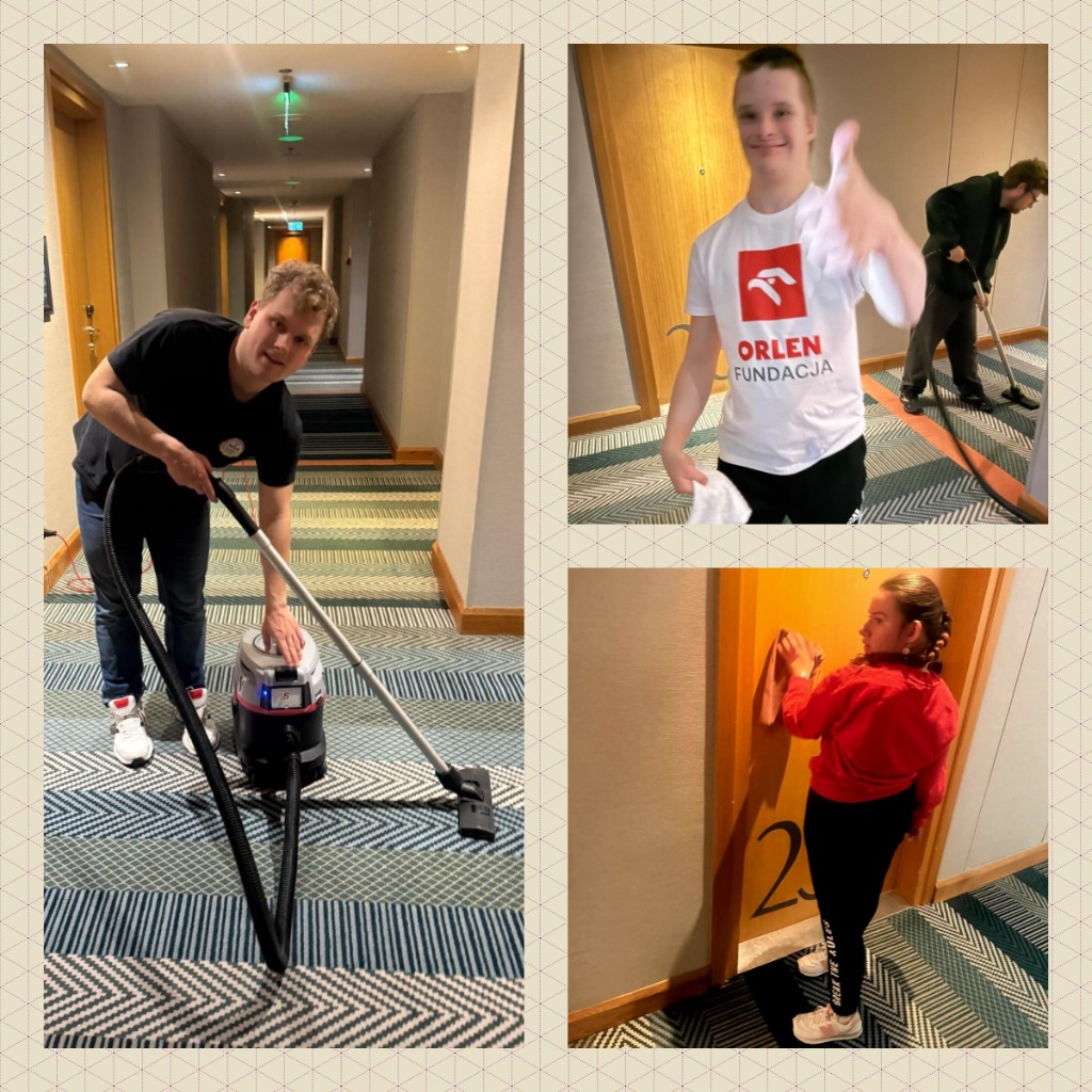 Uczniowie Szkoły Przysposabiającej do Pracy Nr 1 uczestniczą w praktykach wspomaganych w Hotelu "Marriott" w Sopocie. Rozwijają umiejętności posługiwania się narzędziami i środkami czystości oraz sprzętem zmechanizowanym, a przede wszystkim uczą się prawidłowej postawy wobec pracy. W ten sposób realizujemy zadania z projektu "Kariera bez barier".