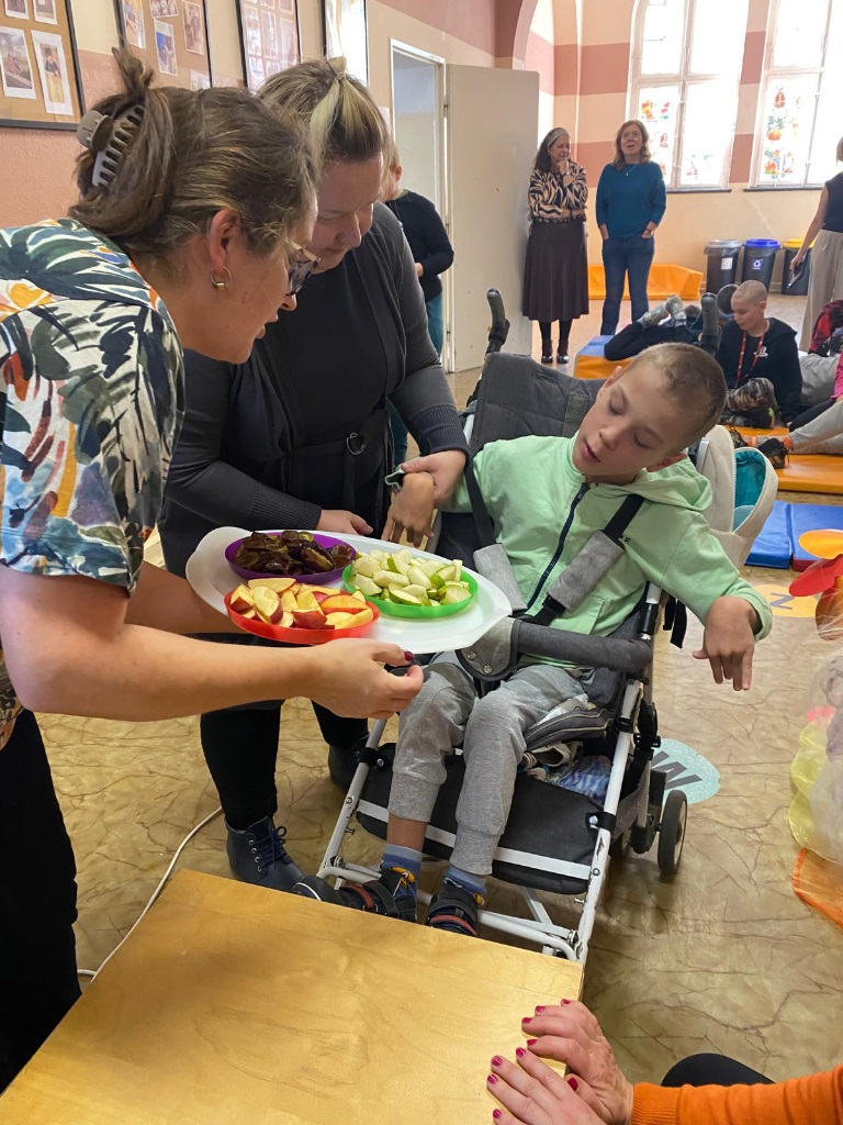 21 października młodsze OET z naszego Ośrodka spotkały się na jesiennych warsztatach AAC. Poznawaliśmy jesień wszystkimi zmysłami - był wiatr, deszcz i mnóstwo jesiennych skarbów. Na koniec degustacja wybranych owoców i warzyw. Dzieci wyposażone w Mówiki aktywnie uczestniczyły w zajęciach.