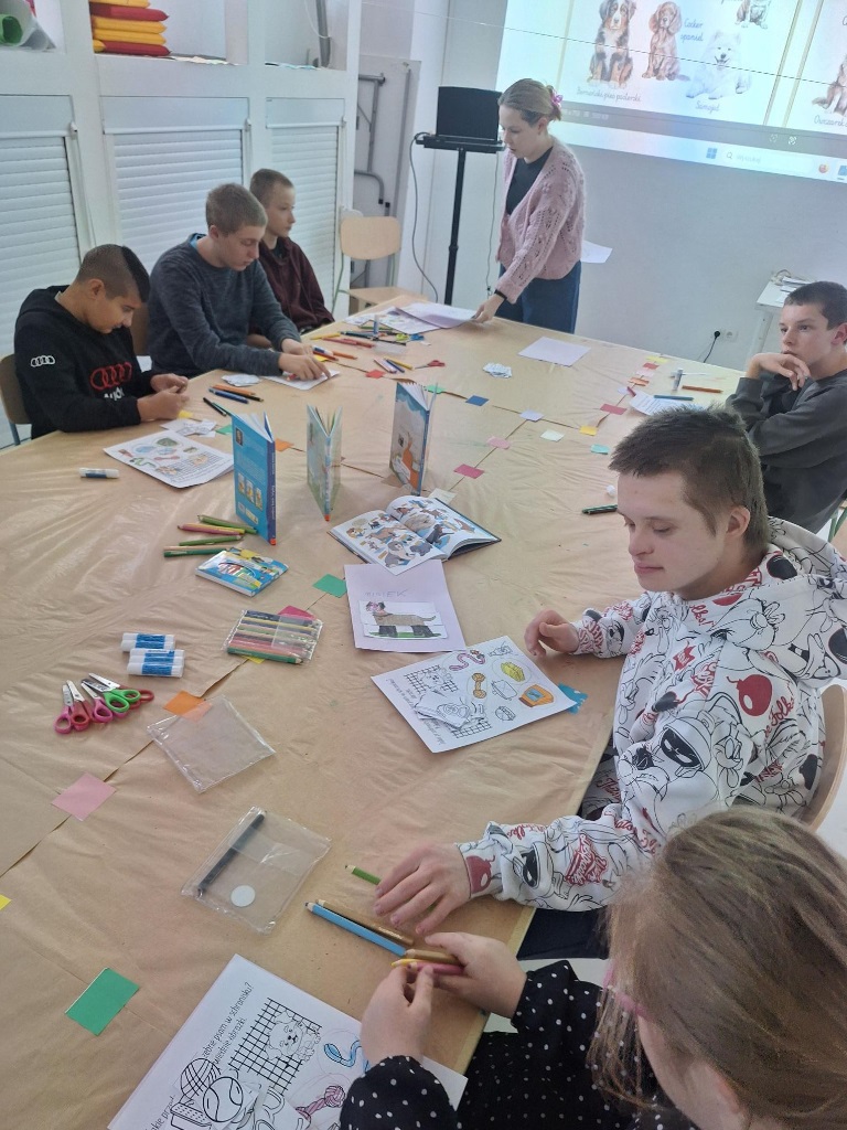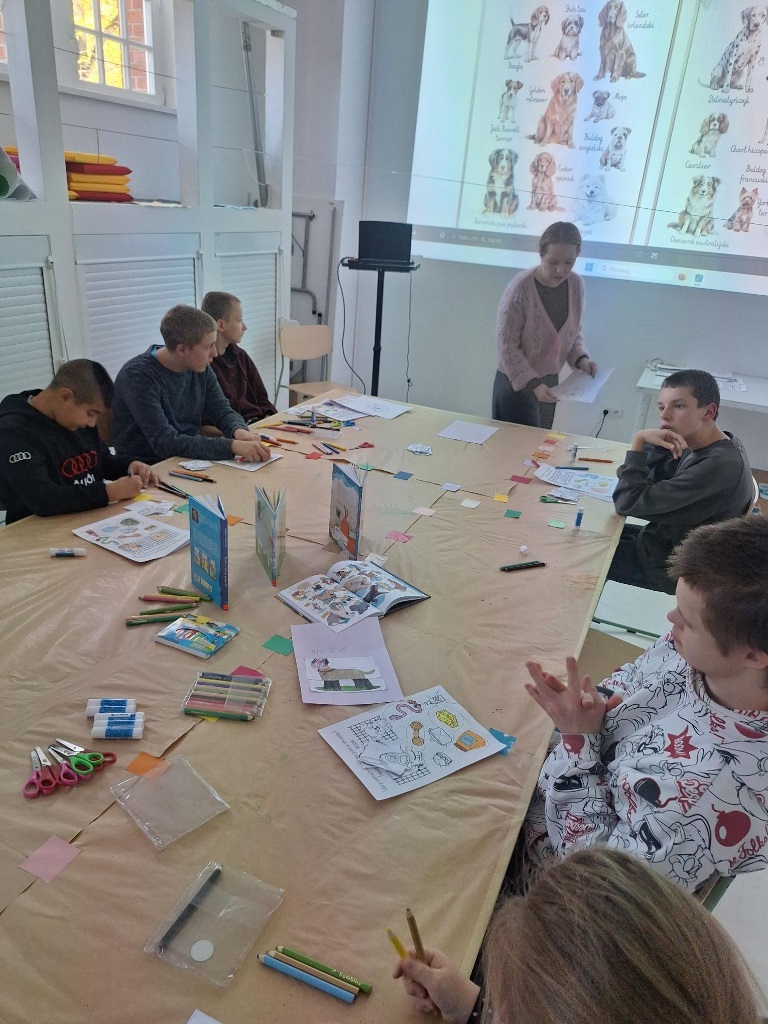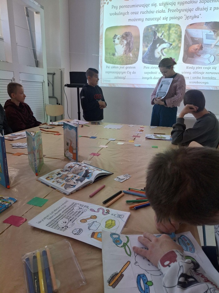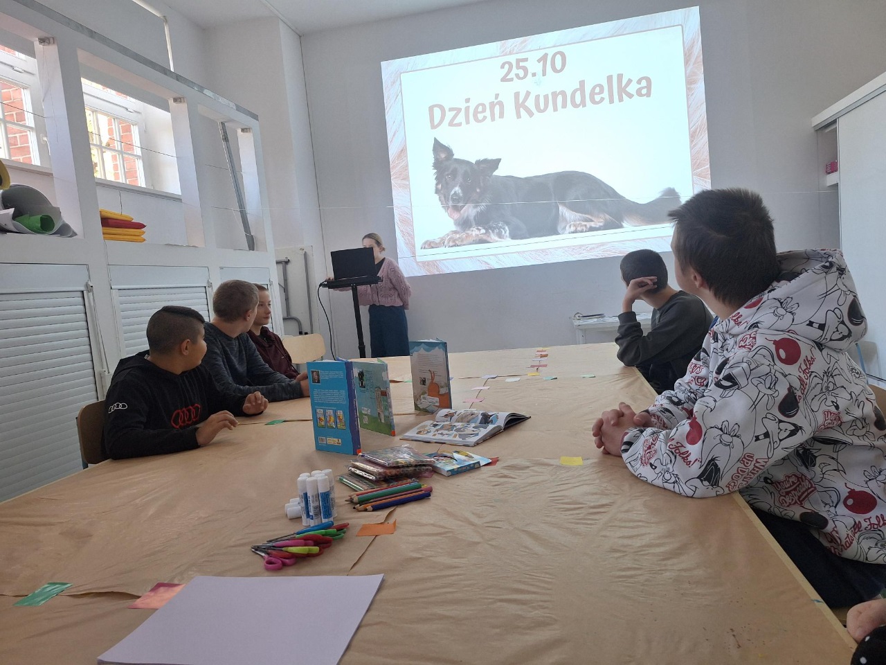 21.10.2025 r. w ramach współpracy z Biblioteką Portową w CSW Łaźnia II wychowankowie świetlicy uczestniczyli w zajęciach czytelniczych. W nawiązaniu do zbliżającego się ,,Dnia Kundelka" tematem zajęć był pies. Wychowankowie uczestniczyli w prelekcji, rozwiązywali różne zagadki i rebusy oraz tworzyli własne "kundelki".